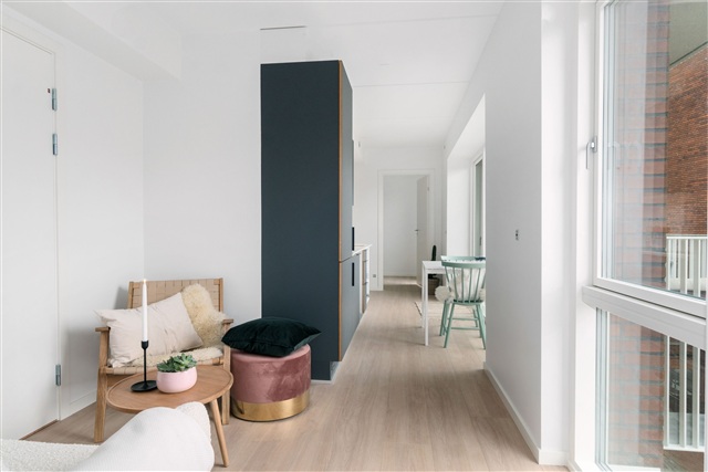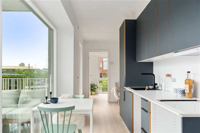 This bright and thoughtfully designed three-room apartment includes a balcony and is equipped with a dishwasher, a combined fridge/freezer, as well as a washer-dryer unit within the living space.Located at Trøjborgvej 80, the building is newly constructed in 2022 and comprises 16 apartments. Residents can enjoy a cozy, green courtyard that features a ping-pong table. Adjacent to the property is a small park with a campfire area, fostering a natural environment rich in biodiversity. The building is situated inside Ringgaden, offering convenient proximity to Risskov, Den Permanente Bathing Establishment, Aarhus University, and is just a short walk from cafés, shops, and the numerous amenities found in the city center.