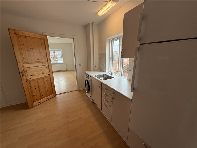 This spacious and attractive two-room apartment is centrally located in Bjerringbro and features a large, bright living room, a bathroom, a kitchen including a dining area, and a bedroom equipped with built-in wardrobes as well as access to a small balcony or conservatory.The unit also comes with a washer and dryer for convenient laundry facilities.