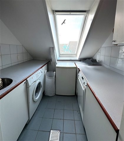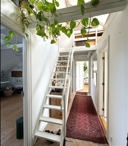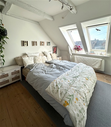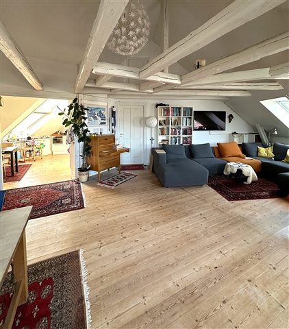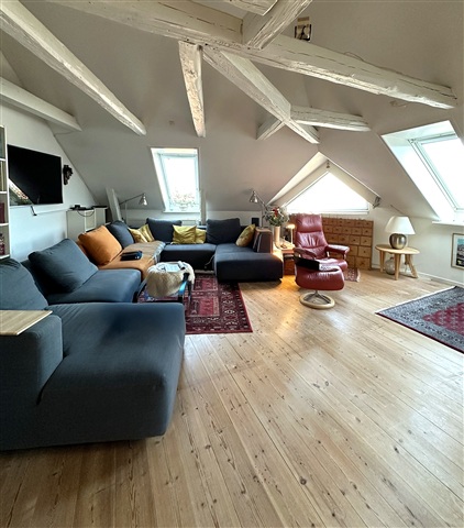Situated on the fourth floor, this unique apartment offers an exceptionally rare feature: a private elevator that opens directly into the residence, operated via a key fob system ensuring the lift stops exclusively at your floor. The interior includes a generous living room that flows seamlessly into the kitchen, creating a bright and welcoming space suitable for both everyday living and entertaining guests. The kitchen is thoughtfully designed with a dishwasher and ample workspace. Within the apartment, there are three spacious bedrooms, a cozy loft area, and a functional utility room equipped to accommodate both a washing machine and dryer. Throughout the home, exposed beams add distinctive character and charm, while large windows provide abundant natural light alongside pleasant views over Danmarksgade and Ågade. Residents also have access to a charming courtyard shared by the building's occupants. This dwelling is perfect for someone seeking something out of the ordinary, combining spaciousness, charm, and an unparalleled private entrance.This property is ideally positioned in the heart of Aalborg. Living here means having immediate access to green spaces, shopping facilities, and everyday conveniences, with cafés, retail outlets, and cultural venues just a short stroll away. Furthermore, excellent public transportation options make it easy to navigate the city.