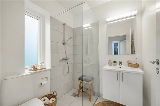 This bright and contemporary terraced house features a well-thought-out layout designed to simplify daily living. Spread across two floors, the 124 square meters offer four spacious bedrooms, two bathrooms, and an open living area that suits families, couples needing extra rooms, or those requiring a home office.Upon arrival, you are greeted by a covered entrance accompanied by a private carport and a practical shed ideal for storing bicycles, strollers, and additional items. The ground floor comprises an entrance/laundry area with tiled flooring, a wardrobe space, and room for a washing machine and dryer stacked vertically. Additionally, the first bathroom on this level is bright and welcoming, equipped with a shower cabin framed by a glass screen.