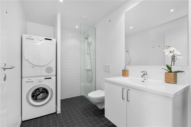 Located in the heart of Aarhus Ø, Havneholmen offers contemporary and inviting residences positioned right by the water. This development features apartments with two to five rooms, each including either a ground-floor terrace or a balcony from the first floor upwards. Every entrance is equipped with an elevator that connects the parking basement directly to the apartments, enhancing daily convenience.Inside, residences are designed with an open living concept where the kitchen, dining area, and living room flow together in a bright and spacious environment. Expansive windows allow for abundant natural light and provide beautiful views. The bedrooms come with built-in wardrobes, while the bathrooms feature underfloor heating, a separate shower stall, and an integrated laundry column. High-quality materials are used throughout the apartments, such as continuous ash wood flooring and sleek fittings from JKE Design.