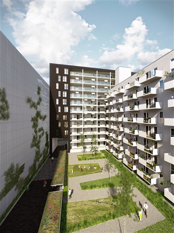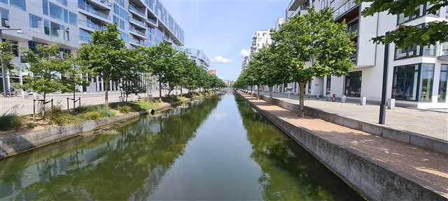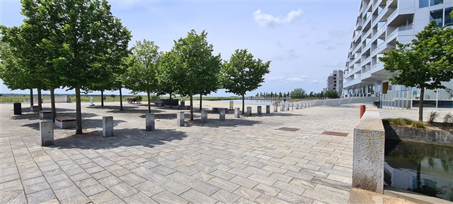 The apartment features three bedrooms along with a spacious kitchen-living area designed with light furnishings. Nearly all units include a pleasant balcony, perfect for sitting outside and enjoying the weather when conditions allow. Bright and welcoming, the apartment benefits from strategically placed windows that fill the space with ample natural light.From inside, residents can appreciate views overlooking a lush and inviting courtyard or gaze out towards the canal. This layout suits both small families and individuals looking to share a living space.
