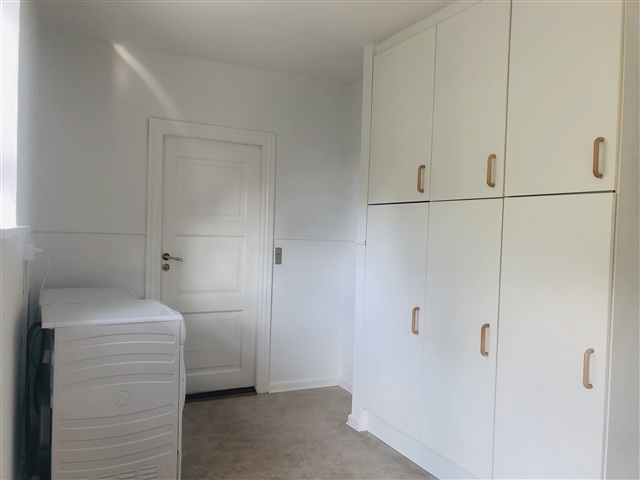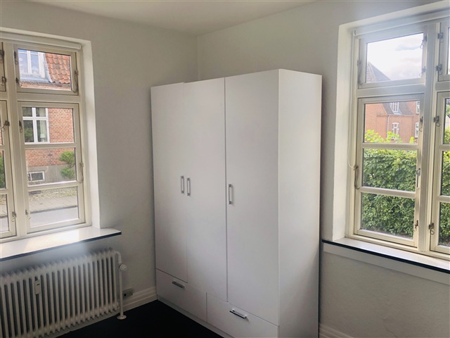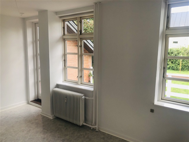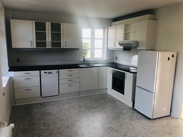 This recently renovated two-room apartment features charming details throughout. Upon entering, you are met with a spacious hallway equipped with built-in wardrobes. The kitchen, generously sized and fitted by Kvik, includes a full range of appliances such as a built-in oven, a ceramic cooktop, a combined refrigerator-freezer, and a dishwasher. From the kitchen, there is direct access to the garden.The apartment also offers a large living room, one bedroom, and a bathroom. Additionally, it comes with a private washer-dryer unit.