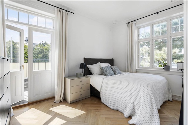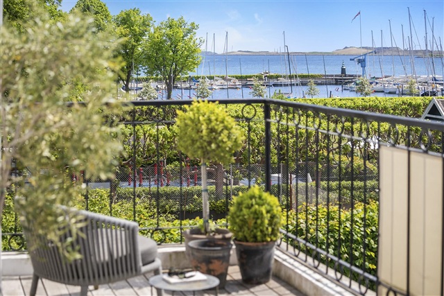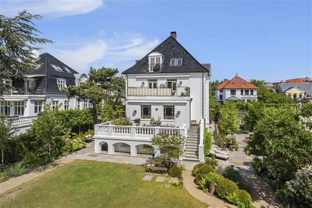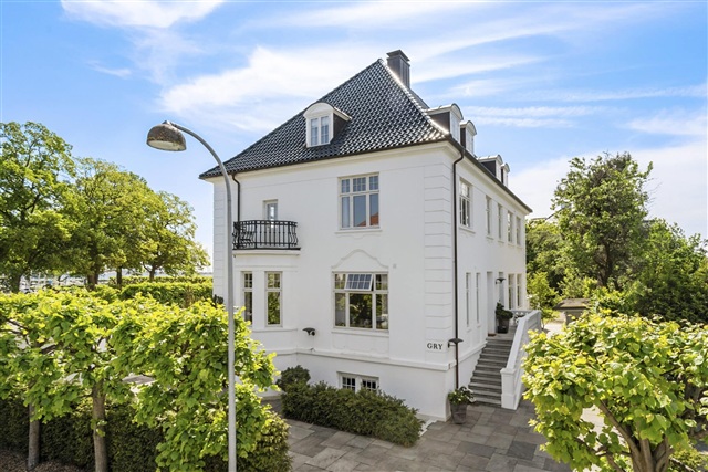 Situated on the first floor of a fully renovated building in Hellerup, this villa apartment offers an exceptional location with views overlooking Hellerup Harbour and the Øresund. The apartment spans 173 m2 and has been refurbished to a high standard. It features a spacious private terrace equipped with an awning, a stylish bespoke open-plan kitchen and dining area that seamlessly connects to the living room facing east.In addition, there is a large room that can function as either a living room or bedroom with a small balcony facing north. From here, French doors lead into the master bedroom, which includes a built-in closet wall and access to a well-appointed bathroom. At the opposite end of the apartment, there is a separate section with its own entrance, containing an additional bedroom that opens onto the expansive terrace. This part also houses a generously sized bathroom fitted with both a bathtub and a shower.