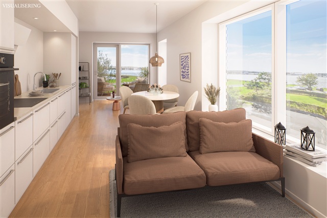 This apartment in Nørresundby offers a combination of abundant natural light and high-quality finishes within a charming neighborhood. Ready for immediate move-in, the home presents a comfortable and inviting environment.Inside, the bright living room provides an ideal space for relaxation or social gatherings. With three separate bedrooms, the layout accommodates privacy and versatility, suitable for use as a home office or additional sleeping areas. Thoughtfully designed to maximize the use of space, the residence benefits from large windows that fill the rooms with sunlight throughout the day.