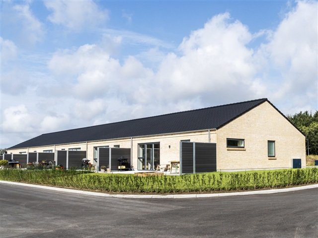 The photos show a comparable 4-room property. This nearly new three-bedroom terraced house located on Iversvej in Hjørring offers a modern living space designed with practicality and comfort. Featuring a private garden and a shed, the outdoor area provides both storage options and room for enjoying time outside. The home includes a full set of built-in appliances, such as a dishwasher, seamlessly integrated into the bright kitchen and dining area that opens up to the living room. Two well-sized bedrooms come with built-in wardrobes, complemented by a stylish bathroom equipped with underfloor heating. Additionally, a private parking space is included for convenience.Situated in a quiet neighborhood while still being close to the city's amenities, this residence caters well to singles, couples, or small families seeking ease of living.