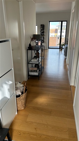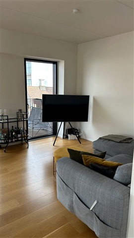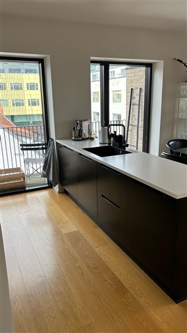 This well-designed three-room apartment is ideally suited for couples or roommates and features two separate balconies. Situated on a quiet parallel street to Strøget, just next to Salling, it offers a peaceful location despite its central position. The apartment boasts a sleek, modern kitchen and bathroom finished with marble, complemented by oak floors equipped with underfloor heating.The building is a recent construction comprising a five-story front house and a four-story rear building, connected by external balconies. Residents have access to a shared rooftop terrace, a basement storage room, and an elevator, as well as a small courtyard area.