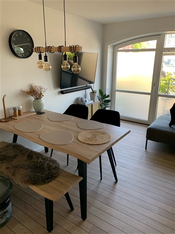 This charming two-room apartment is situated within a recently renovated building, offering an appealing location close to both the Metropol shopping center and the pedestrian street in Hjørring.Occupying 64 well-planned square meters, the residence features an open-concept kitchen and living room combined into one space, complemented by a bedroom and a bathroom. The apartment comes complete with all essential appliances, including a washing machine, dryer, extractor hood, dishwasher, induction cooktop, oven, and a fridge-freezer unit.