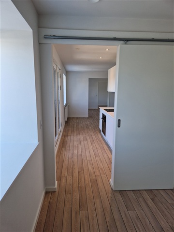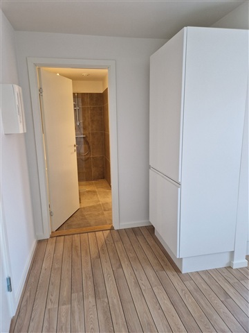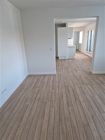 This recently renovated three-room apartment offers a total of 86 well-utilized square meters and is situated in a newly refurbished building in Hjørring. Its location is convenient, positioned close to both the Metropol shopping center and the pedestrian street in the city.The residence features a bright kitchen that opens onto a small, charming balcony, alongside two bedrooms and a bathroom. Included with the apartment are all essential major appliances: a washing machine, tumble dryer, range hood, dishwasher, induction stove, oven, and a combined fridge/freezer.