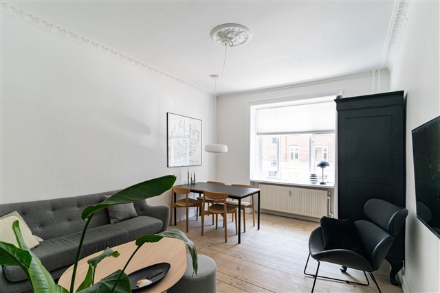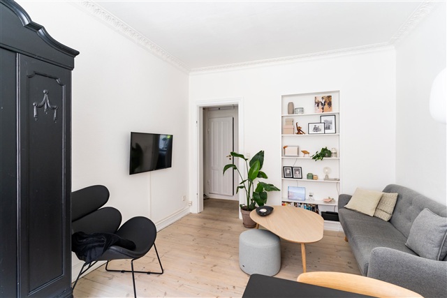 Situated in the vibrant heart of Nørrebro, this well-laid-out two-room apartment spans 53 square meters on Husumgade. It offers a classic Copenhagen apartment experience featuring a practical floor plan and a coveted location close to the energetic city atmosphere.Inside, the living room provides a cozy environment with ample space to accommodate both seating and dining arrangements, benefiting from plentiful natural light streaming through large windows. The bedroom is generously sized, allowing room for a bed as well as storage solutions. The kitchen is thoughtfully designed with ample counter space to maximize functionality, while the bathroom is equipped with a separate shower area for convenience.