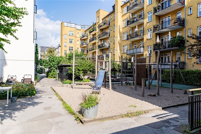 The building, erected in 1901, retains the timeless charm of Copenhagen architecture with its brick facade. The apartment is heated using district heating and is part of a well-maintained multi-storey property.