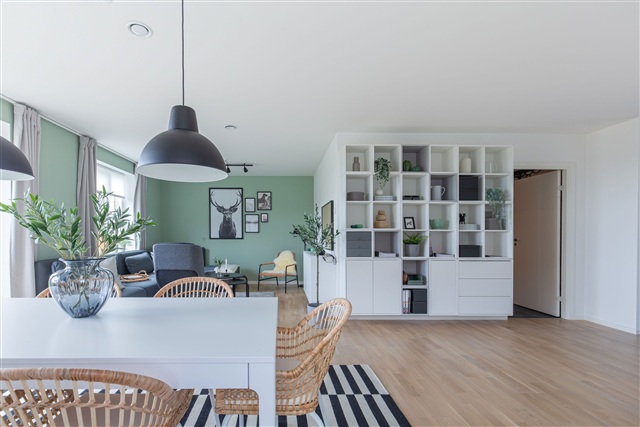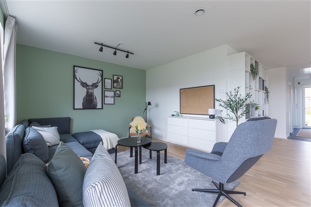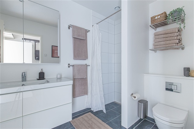 As you step inside, a practical entryway welcomes you and leads directly to the kitchen and dining area, which comfortably accommodates a dining table. Beyond this, a separate living room offers ample space for a corner sofa and opens through doors to a private, south-facing garden featuring a wooden deck, lawn, and beech hedge. The ground floor includes a guest toilet, while the first floor houses a bathroom equipped with a laundry column and three generously sized bedrooms, one of which includes a wall of closets. The home is bright and inviting, enhanced by large windows and glass doors. In the front yard, you will find a storage shed and one designated parking spot.The property is located in the well-established townhouse neighborhood of Lyshøjsminde and Pilegårdsminde within Tværhøjgård in Greve. This vibrant and green district offers proximity to natural open spaces, shopping, and daily necessities, fostering a lively community with safe routes to school. Emphasizing life beyond the walls of the houses, the area encourages neighborly interaction with spaces for chalk drawings on the streets and flea markets in green zones. The local community, known as Nærvær, provides opportunities to connect and engage with neighbors. Greve itself caters to diverse interests with small local shops, large shopping centers, sports clubs, associations, kindergartens, schools, and beautiful natural surroundings, including one of the region's best and longest beaches along the coast. Please note that video and photo materials provided depict a similar dwelling and not this specific rental unit.