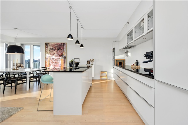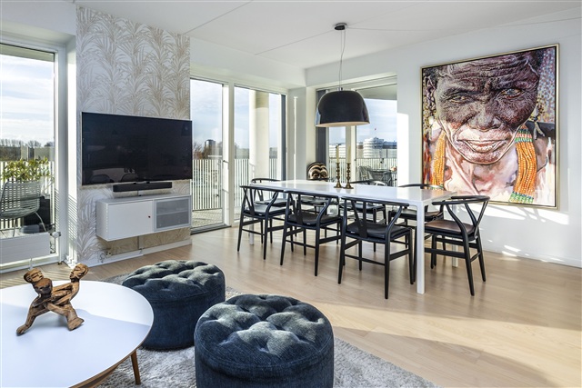 Spacious, sun-drenched, and inviting 3-bedroom + kitchen/living room (Danish 4-room) apartment south-facing balcony with stunning Views of nature, water, and city.Bright and spacious apartment with 40m2 balcony and three well-proportioned bedrooms, a large open-plan kitchen and living area, a modern bathroom, and a generous south-facing balcony with beautiful views of city, water, and forest.