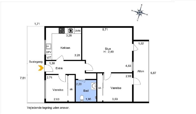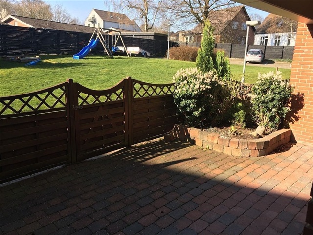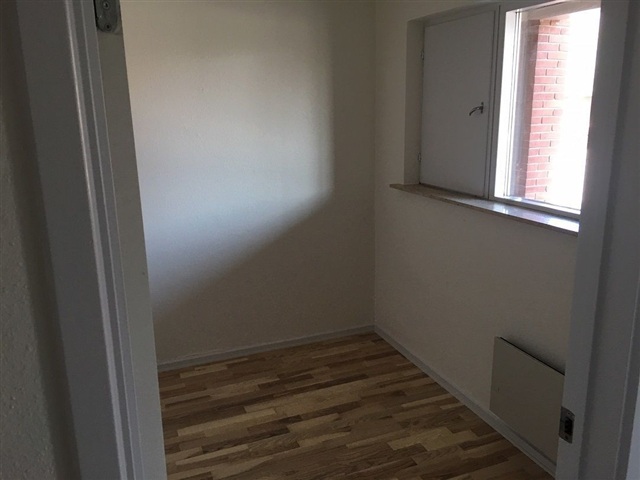 This beautifully and thoroughly renovated apartment offers a bright and contemporary living space centrally situated in Ikast, within close proximity to the pedestrian street and train station. The layout includes an entrance hall leading to a newly installed kitchen featuring white cabinetry contrasted by a black countertop, ample space for dining, and equipped with a washing machine, dryer, and dishwasher. There is a room with sliding wardrobes and a recently updated bathroom illuminated by natural light, boasting floor-to-ceiling tiles in the shower area, a large washbasin unit, and tiled flooring.The spacious living room is characterized by light-colored flooring and high ceilings, opening directly onto a generous south-facing courtyard. The apartment contains a bedroom fitted with sliding wardrobes, which also provides access to a private courtyard. Additionally, the apartment comes with a storage room located in the basement. Heating is supplied by electric radiators, and water consumption is covered by the rent. Shared facilities include a south-facing communal garden and a parking area for residents. Keeping pets in the property is prohibited.
