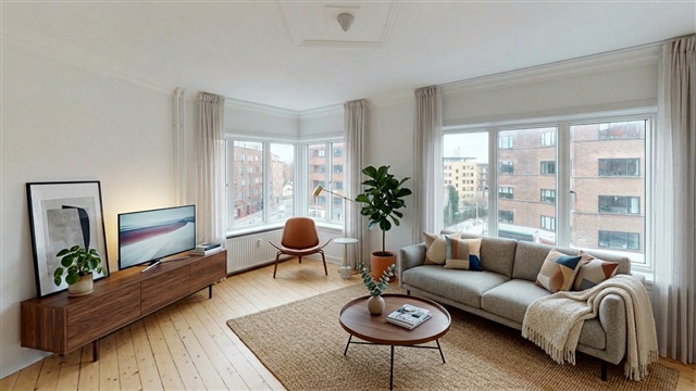 This apartment is suitable for up to four individuals looking to share a living space.Inside, a long hallway connects the kitchen, bathroom, and four separate rooms. The kitchen features modern AUBO fittings, with white tiled walls, white cabinet doors, a fridge-freezer, and a dishwasher, all appearing new. The bathroom is well-maintained and clean, equipped with white tiles and ample space for showering. Each of the four rooms is spacious and bright, benefiting from large windows that allow plenty of natural light.