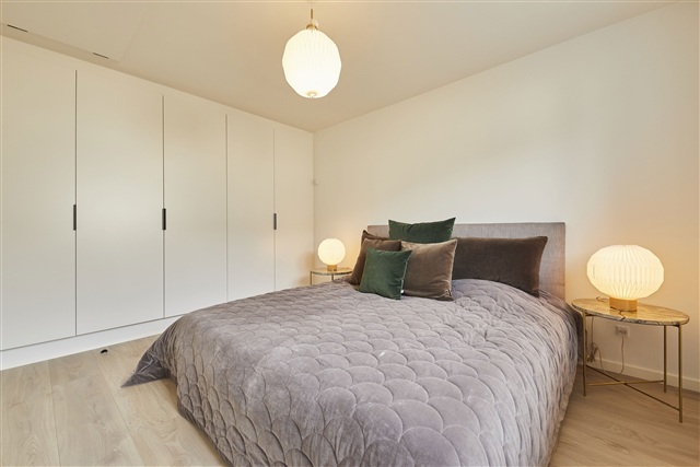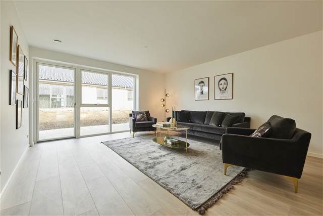 This charming end-terrace house, built in 2023, encompasses 85 square meters and offers three well-proportioned rooms designed to optimize natural light, practicality, and contemporary living standards. It caters efficiently to singles, couples, or small families seeking a comfortable residence. The heart of the home is a spacious, open-plan kitchen and living area where cooking, dining, and relaxation flow seamlessly together in a bright and welcoming environment. Expansive windows flood the space with daylight and establish a clear visual and physical link to the outdoor zones. From the living room, direct access leads to a private terrace and garden situated at the rear, providing ample space for outdoor leisure and cozy gatherings.Inside, the property includes a generously sized bedroom fitted with built-in wardrobes and an additional room that can be adapted as an office, guest room, or children's bedroom. Upon entering, there are doors to both the utility room and the extra room. The utility area is functionally arranged to accommodate laundry facilities including a washing machine and dryer, alongside housing the home's technical installations. The bathroom presents a sleek and modern style, featuring a shower enclosure and elegant materials throughout.