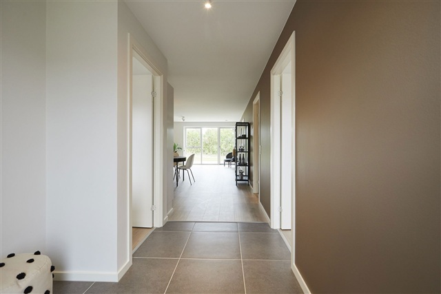 Constructed with light, timeless finishes, the residence boasts oak plank flooring in the living spaces and bedrooms, complemented by tiles in the entrance hall, utility room, and bathroom. Underfloor heating runs throughout the entire house, coupled with a ventilation system that maintains a healthy indoor climate year-round. Additional amenities include a tool shed measuring approximately seven square meters and two parking spots, one of which is sheltered by a carport. The property is also pre-equipped for an electric vehicle charging station. Pets are permitted subject to approval. Utility consumption for electricity, water, and heating is billed directly by the service providers, with the heating supplied by an air-to-water heat pump.