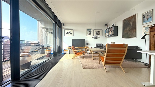 Situated on the fourth floor of a building equipped with an elevator, this exclusive apartment offers a prime location directly adjacent to Christianshavn Canal at the harbor's mouth. The residence features an entrance area with built-in wardrobes and a guest bathroom complete with a shower. Connected dining and living rooms provide a fluid living space, with access from the living room to a spacious southwest-facing balcony. The kitchen is bright, generous in size, and beautifully designed.There are two bedrooms, including a master suite that boasts a small walk-in closet as well as a private bathroom with a shower cabin and in-unit washer and dryer. The rental includes a private parking space conveniently located in front of the building and a cellar storage room. From this address, one can easily walk to the charming restaurants and cafés by the historic canals of Christianshavn, as well as to the metro station at Christianshavns Torv. Daily shopping needs are also just a few hundred meters away.