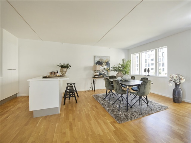 This recently constructed four-room apartment is situated in the desirable new district of Copenhagen Harbor known as "Teglværksbyen," which directly extends from Enghave Brygge and faces Amager Fælled across the way. The surrounding area offers easy access to water, ideal for recreational activities such as kayaking, fishing, and swimming during the summer months. Plans are underway to develop a canal that will reach right up to the property itself.The local environment presents a wide array of opportunities, while the conveniences of the city remain within close reach. The bicycle route running along the quay encircles the entire Copenhagen Harbor and connects you to Rådhuspladsen in less than fifteen minutes. In addition, the metro, which opened this summer, and the Sydhavn S-train station, located only 900 meters from the residence, provide excellent public transportation options.