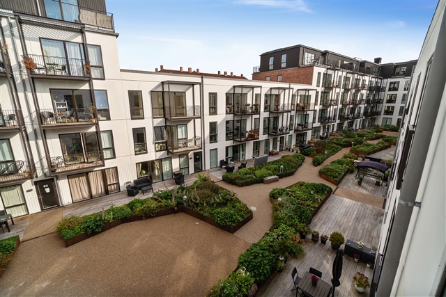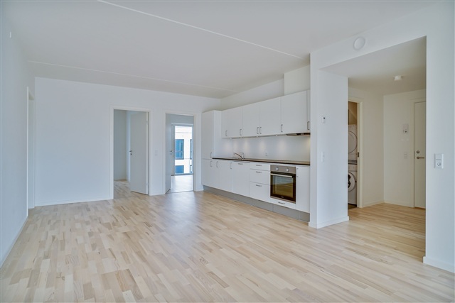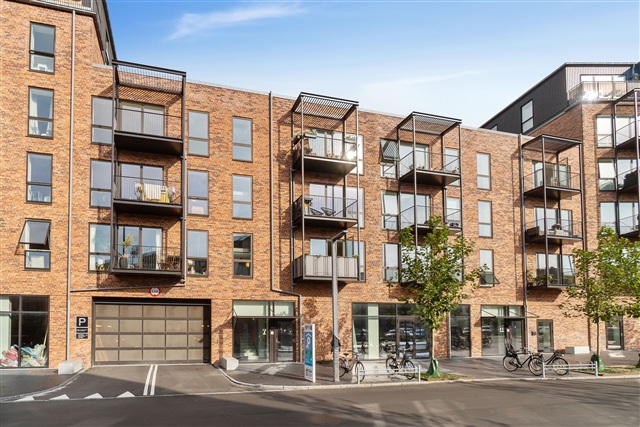 Located in the heart of Valby, this recently constructed building houses a charming apartment characterized by an efficient layout and high-quality finishes. With a suitable number of rooms, this residence is ideal for either a couple or a small family. The building's distinctive exterior combines a brick facade with metal cladding on the top floor, lending the structure a modern, industrial edge. Outside, ample windows and balconies add visual interest and prevent the facade from appearing monotonous.Upon entering, you step into a hallway that seamlessly connects to the rest of the living area, featuring a built-in closet providing generous storage for outerwear. The bathroom is equipped with a shower niche and enough space to accommodate a compact washing column. The bedroom impresses with its generous proportions and abundant natural light. Most of the living space is found in the combined living room, which boasts a bright and contemporary design, highlighted by beautiful flooring and large windows. The kitchen is thoughtfully arranged along one side, maximizing space and creating an inviting open area perfect for various furnishing options. The living room is enhanced by access to a practical storage room, an expansive window section, and a terrace door leading out to a south-facing balcony that overlooks the neighborhood.