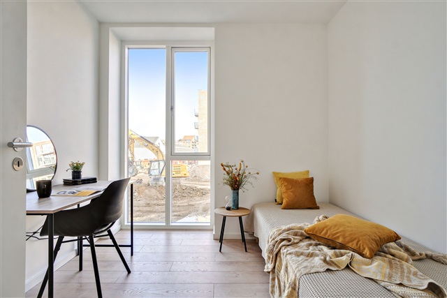 These modern, bright apartments are located in Brøndbyvester, offering move-in-ready homes on Kirkebjerg Tværvej. Whether you are a couple or a family, these residences provide a living environment suited to a variety of needs and preferences. The neighborhood supports everyday conveniences, making it ideal for residents of all ages, with or without children.The property is a recently constructed red brick building, distinguished by its expansive windows, gray accents, and glass-fronted balconies that are comfortably spaced apart. Each apartment features well-proportioned rooms, airy living areas, attractive kitchens, and sizable bathrooms. Additional outdoor space will become available once the courtyard area is completed. All homes are situated on a single floor and include a balcony and an internal storage room. In terms of appliances, tenants will find a refrigerator/freezer, built-in oven, cooktop, extractor hood, dishwasher, washing machine, and dryer.
