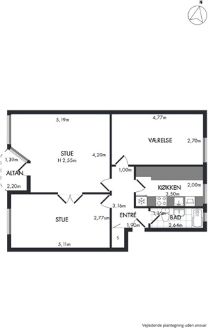 3-værelses lejlighed med udsigt tæt på indkøb og transport