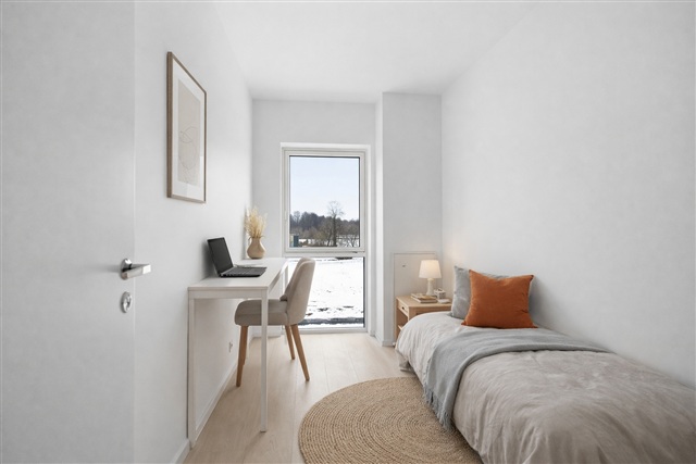 Settle into a newly constructed home designed with an emphasis on sustainable features, comfort, and a peaceful setting. The residence is built using wood and slate tiles, creating a balanced and timeless aesthetic within the verdant neighborhood. Located near shopping facilities, a school, a sports hall, and public transit options, this property offers convenient access while being nestled in tranquil green surroundings on a historical site adjacent to a protected lake area.This property is part of a general housing association, therefore the danish rules for such applies.