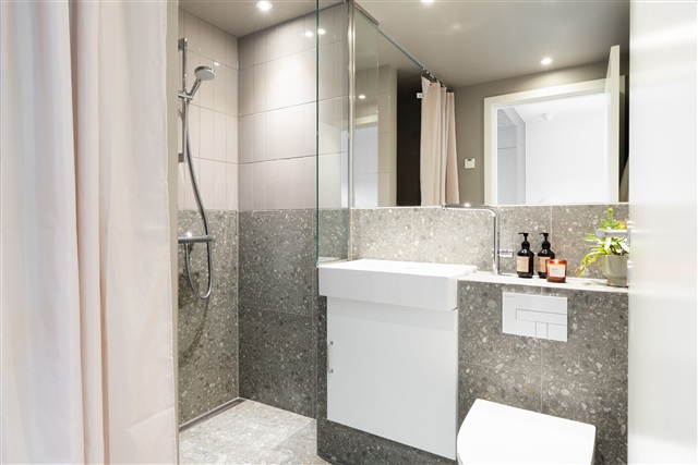 Located in Højbjerg, this shared living community is designed specifically for adults, making it an excellent choice for individuals or couples who appreciate being close to nature. The residence is well-maintained and features an open-plan living room and kitchen area that benefit from abundant natural daylight. The kitchen comes fully equipped with modern appliances, while the living space is brightened by large windows that allow ample light to fill the room. Additionally, the apartment includes a spacious bedroom and a sleek bathroom that offers space for a washer-dryer unit.Solbrinken comprises 29 rental units ranging in size from 60 to 94 square meters. Each apartment features a sand-colored kitchen from HTH, complete with a dishwasher, a refrigerator-freezer combination, and other amenities. The flooring consists of attractive laminate, and the bathroom offers a separate shower enclosure. Most of the homes include a walk-in closet as well as access to a private balcony.
