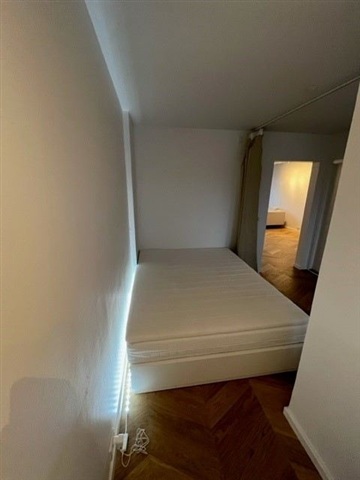 The bedroom is designed as a bright alcove positioned centrally within the apartment. Additionally, the building offers laundry facilities and bicycle parking.