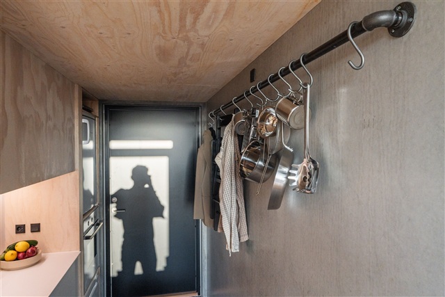 Residents have access to various communal amenities, including a lounge, shared kitchen, fitness room, rooftop terrace, and a workshop where neighbors can gather and socialize.