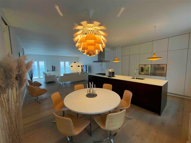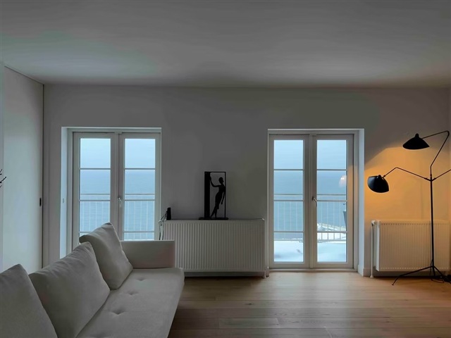 The property also features a parking spot accompanied by an alarm system, enhancing everyday security and ease. Its highly desirable location places schools, kindergartens, train stations, bus stops, and convenient shopping options within a short distance. Moreover, both forest, beach, and harbor lie nearby, offering an ideal combination of natural surroundings and urban amenities. This represents a rare chance to reside in a sought-after neighborhood with sea views and all daily conveniences readily accessible.
