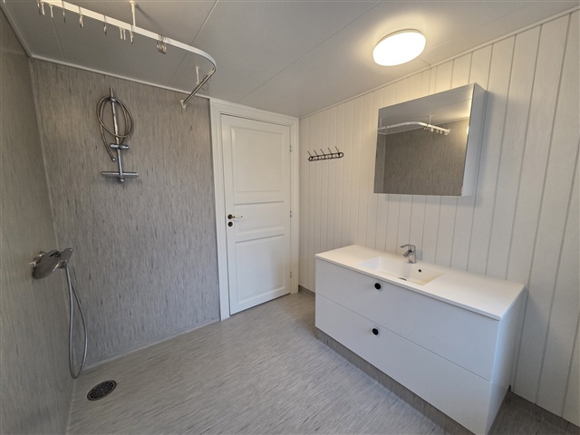 It consists of an entrance hall, kitchen-dining room, bedroom and bathroom with shower. There is a laundry room with washing machine and dryer.