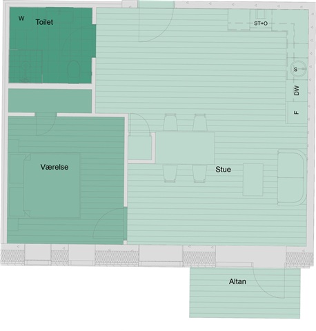 The bedroom and bathroom are situated in the northern section of the apartment. The bedroom has a practical rectangular layout allowing for a bed, wardrobes, and even a small workspace if desired.