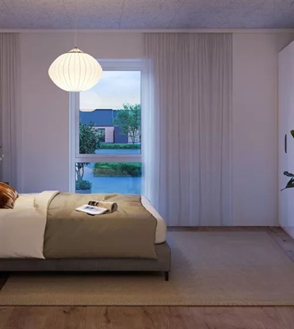 This charming four-room terraced house features a spacious kitchen-living area designed for practical and comfortable daily living. Please note that all images, floor plans, and visualizations are intended as guidance only.The heart of the home is its open-plan kitchen and living room, where a large L-shaped kitchen from HTH with integrated appliances blends seamlessly into the social space. This modern kitchen provides an excellent environment for cooking and everyday activities. The layout comfortably accommodates both a dining table and a seating area, and the living room offers direct access to the terrace.