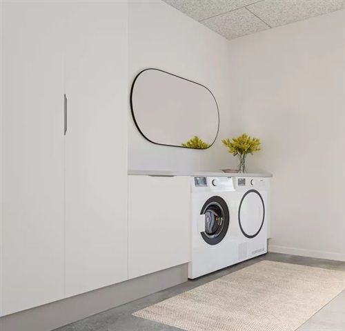 The entrance hall offers a generous space suitable for storing coats and shoes. The property also comes with a washer and dryer already installed for convenience.