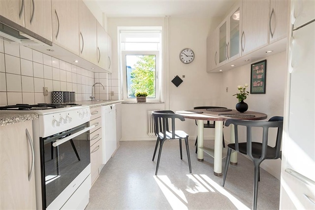 The neighborhood presents a vibrant local atmosphere with cafés, shops, and small stores nearby, along with green spaces like Østre Anlæg just a short walk away. Excellent bus connections, cycling options, and easy access to the motorway network make the area appealing to students, young couples, and first-time buyers alike.