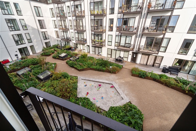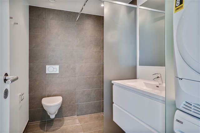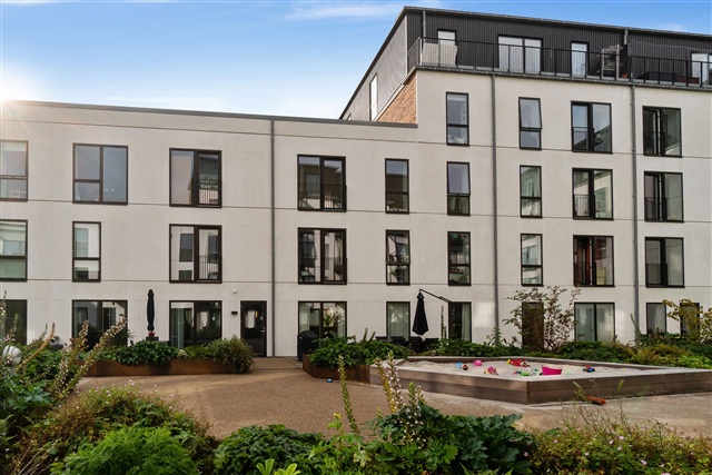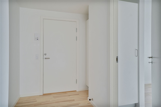 Situated in the heart of Valby, this newly constructed building houses a stylish and contemporary apartment. The residence offers an efficient layout and high-quality finishes, making it an ideal choice for couples or small families. The building itself features a striking combination of a brick façade complemented by metal cladding on the top floor, lending the architecture a distinctive, industrial edge. Outside, large windows and balconies punctuate the façade, providing visual interest and breaking up the uniformity.Upon entering, you step into a hallway that seamlessly connects to the rest of the living area, equipped with a built-in wardrobe offering ample space for outerwear. The bathroom includes a shower niche along with room for a practical washer-dryer stack. The bedroom stands out with its generous dimensions and superb natural light. The majority of the apartment's square footage is dedicated to the living area, which boasts a bright, modern design, attractive flooring, and expansive windows. The kitchen is smartly arranged along one wall, creating an open-plan space that feels inviting and versatile for different furnishing options. From the living room, you can access a functional storage room and enjoy views through a wide window as well as a door leading to the south-facing balcony overlooking the neighboring area.