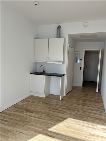 This one-room apartment is situated in a distinctive building right in the heart of Hillerød, making it an excellent choice for a single person or student seeking a practical living space with a central location. The interior features a bright living area that comfortably accommodates both sleeping and seating arrangements, accompanied by a practical kitchen and a bathroom, ensuring an efficient use of the available square meters.Positioned at the corner of Bakkegade and Vinkelvej, the property offers access to shared laundry facilities and a charming, green courtyard. It is within walking distance of the town center, where shops, dining options, and various services are easily accessible. Public transportation is conveniently available from Hillerød Station. Additionally, nearby green spaces such as Skansebakken, Lille and Store Dyrehave, and Gribskov provide ample opportunities for outdoor activities. The area also boasts cultural attractions including Frederiksborg Castle and Støberihallen.