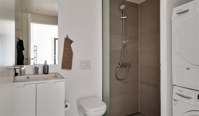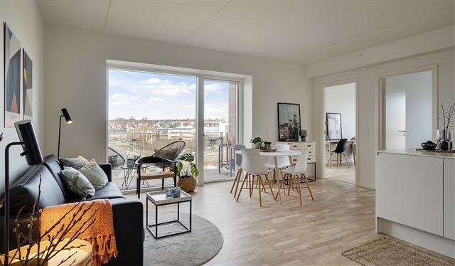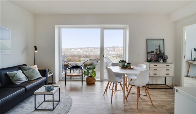 Experience convenient urban living combined with the tranquility of nature in this beautifully designed apartment located in Trianglen. Situated within a striking square block next to the historic freight yard area, this residence places Aarhus city center just steps away, while offering immediate access to nearby green recreational spaces.This location serves as an excellent hub for those seeking proximity to shopping, educational institutions, and workplaces. It suits a wide range of occupants, including young individuals, singles, couples, and families with children. Inside, the apartment features a spacious and welcoming entrance hall with ample room, a bright and contemporary kitchen equipped with a dishwasher, as well as a stylish bathroom completed with a separate shower enclosure alongside both a washing machine and dryer. The generous living room, seamlessly connected to the kitchen, provides a versatile space ideal for everyday life as well as entertaining guests. Additionally, there is a charming west-facing balcony offering a lovely view of the evening sun.