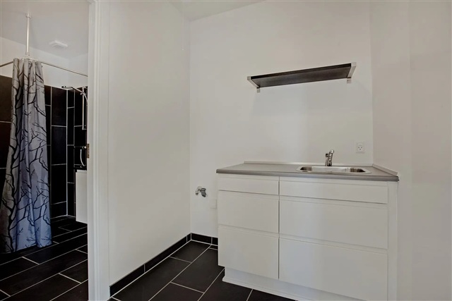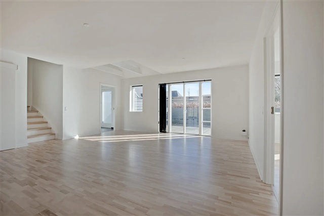 The property features a living room that flows seamlessly into the kitchen and dining area. It also includes one bedroom, a bathroom, and a utility room equipped with a washing machine and dryer.The kitchen is a stylish HTH model, complete with built-in dishwasher and combined fridge/freezer units. The floors throughout are made of ash parquet.