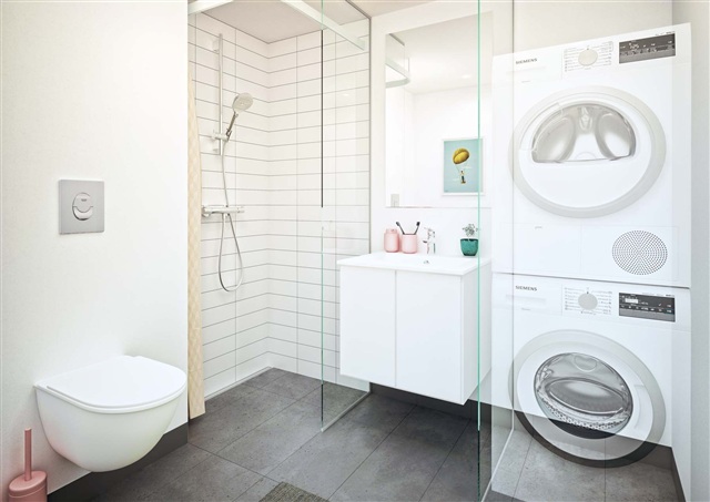 This bright two-room apartment, located within a contemporary and environmentally conscious residential complex in Hillerød, is now available for rent. Suited for students, seniors, or individuals seeking a blend of comfort and practicality alongside private outdoor space, it offers a well-planned living arrangement that includes direct access to a south-facing terrace or balcony.The residence features an entrance with durable tiled flooring and a kitchen area that seamlessly extends from the hallway. It comprises a generously sized bedroom and a bathroom spacious enough to accommodate a washing machine. The living room benefits from abundant natural light and opens directly onto the outdoor area, enhancing the sense of openness and connection with the exterior. Constructed with quality materials, the building incorporates sustainable elements such as green sedum roofs and solar panels. Selected stairwells provide elevator access, and convenient parking options are available on the premises.