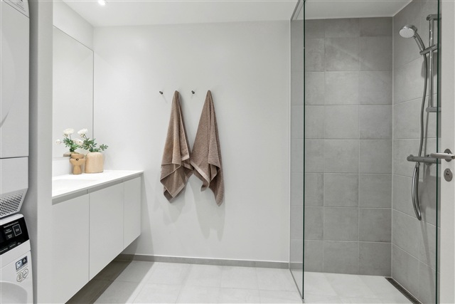 Marthahus offers a new residence located in the central area of Bellakvarter. This inviting and thoughtfully designed apartment combines practicality with a pleasing aesthetic. The residence features a spacious bedroom accommodating both a bed and wardrobe comfortably. Upon entering, you will find a stylish bathroom that includes a separate shower area, a laundry column, and contemporary fixtures. Moving on from here, the apartment opens up to a bright kitchen and dining area.The modern kitchen is fitted with built-in appliances such as a dishwasher, a fridge/freezer, an oven, stovetop, and a hood, all seamlessly integrated into an open-plan layout that connects directly to the living room. This space provides room for both a dining table and a seating area. From the living room, there is access to a balcony where you can relax and catch some sunlight.