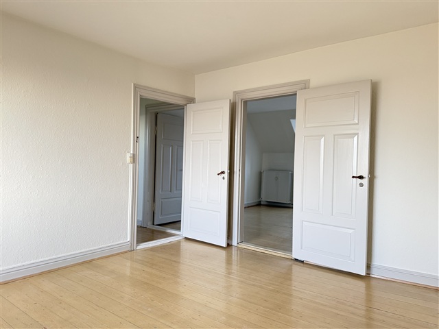 This spacious and practical 4-room apartment, measuring 90 m², is now available for rent and is situated in a central location on Søren Møllers Gade. The layout is well thought out, providing ample space suitable for both daily living and family activities.The residence features two generously sized living rooms, a large bedroom equipped with plenty of wardrobe storage, as well as an additional room, which also includes built-in closets. Furthermore, the apartment offers a well-appointed kitchen complete with a dishwasher and a bathroom. This arrangement makes the property ideal for families, couples, or individuals seeking extra space for a home office or guest room.