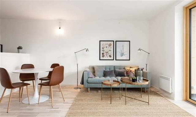 Located within Ibihaven, a community designed exclusively for residents aged 50 and above, this three-room apartment offers a bedroom, a guest room, a bathroom, and a modern kitchen fully equipped with all necessary appliances. The kitchen seamlessly connects to the living room, which opens onto a terrace. The bathroom features underfloor heating and has been arranged to accommodate a laundry column if desired.In addition to the charming outdoor terrace, the apartment includes a small front area that leads directly to the shared green spaces of the atrium garden, allowing for personal touches such as plants or decorative pots.