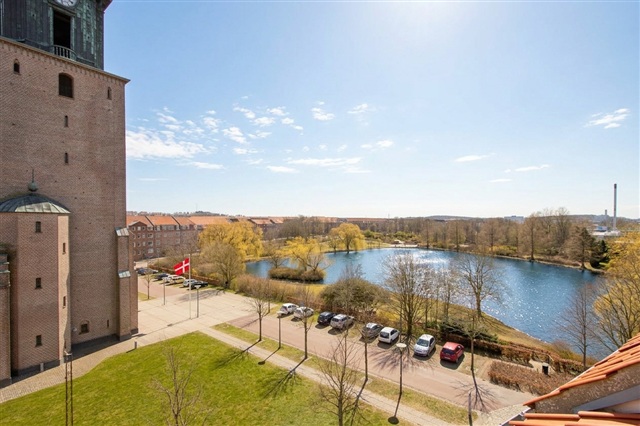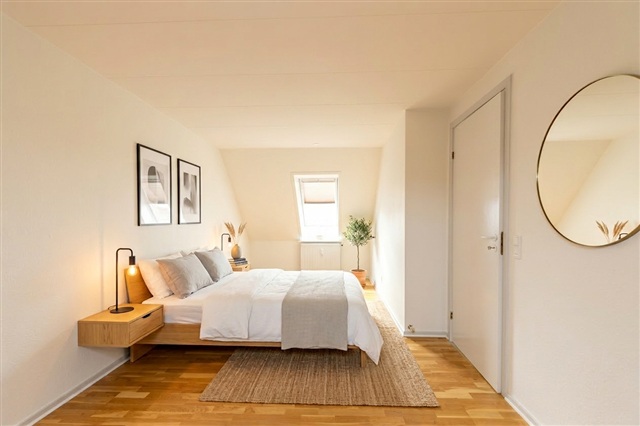 The apartment offers a contemporary and elegant ambiance that creates a sense of home as soon as you walk through the entrance. The open-plan kitchen features modern fittings, including a dishwasher and a fridge-freezer unit. The bathroom is equally fresh and up-to-date, showcasing white tiles, a glass partition for the shower area, and under-sink storage solutions.