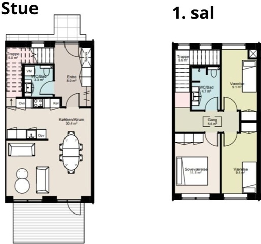 Building 1 comprises six appealing terraced houses, each ranging from 110 to 116 square meters, designed for those seeking a contemporary and functional home with ample space to accommodate everyday living. Every residence features three bedrooms, two bathrooms, and a spacious open-plan kitchen and living area that serves as the central gathering place of the home. The thoughtfully arranged layout ensures a comfortable sense of space and offers great flexibility to suit family life, guests, or working from home.Constructed with vertical apartment partitions, these homes provide the authentic feel of a true townhouse while maintaining a private atmosphere. Each property includes a small terrace facing south, offering a sunny spot throughout the day perfectly suited for enjoying morning coffee or calm summer evenings. Inside, emphasis is placed on quality and comfort, highlighted by elegant HTH cabinetry, a full suite of Siemens appliances, underfloor heating, and a ventilation system that together create a modern living environment with high usability and a pleasant indoor climate.