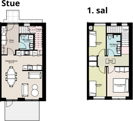 Building 1 comprises six inviting townhouses, each spanning between 110 and 116 square meters, designed for those seeking a contemporary and well-functioning home with ample space to accommodate daily living. Each residence includes three bedrooms, two bathrooms, and a spacious open-plan kitchen and dining area that naturally serves as the heart of the home. The thoughtfully planned layout ensures a comfortable sense of space and offers great flexibility, suitable for family life, hosting guests, or working from home.Constructed with vertical apartment boundaries, these homes preserve the distinct feel of a traditional townhouse with a private atmosphere. Each unit features a small south-facing terrace, providing sunshine throughout the day and enough room for enjoying morning coffee or relaxed summer evenings. Inside, emphasis has been placed on quality and comfort, with elegant HTH cabinetry, a full set of Siemens appliances, underfloor heating, and a ventilation system, all contributing to a modern house that delivers high usability and a pleasant indoor climate.
