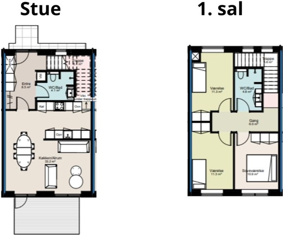 Building 3 consists of four appealing terraced houses, each ranging from 100 to 103 square meters, designed with an emphasis on comfort, natural light, and a practical layout. These homes are suitable for those seeking additional space combined with a living environment that supports an easy daily routine. Within each residence, there are three bedrooms, a kitchen featuring a skylight, a bathroom, and a convenient entrance area equipped with both a washing machine and a dryer. The interior design focuses on seamless room flow and a natural connection between different functional areas, ensuring the home feels both spacious and well-organized.Residents have direct access to a west-facing terrace, ideal for enjoying the afternoon and evening sun in a calm setting. The green sedum roof contributes to a contemporary and harmonious aesthetic that aligns seamlessly with the overall architectural style. In sum, the units in Building 3 offer generous living space, thoughtfully planned solutions, and a careful balance between practicality and visual appeal.