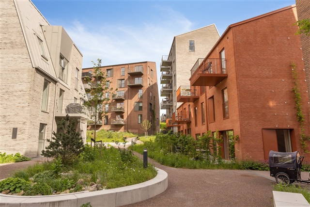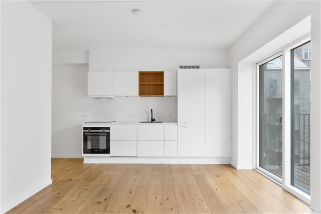 Designed by CEBRA architects, the building has been constructed with a strong emphasis on quality. The apartments feature kitchens from Svane Køkkenet, presenting a modern take on the handleless white kitchen. Particular attention has been paid to details such as extra-deep drawers with soft-close and full extension, a 20 mm countertop, and an undermounted black sink that complements the black faucet. All major appliances are supplied by Siemens. Residents benefit from an elevator that leads directly to their entrance, beautiful oak floors with underfloor heating, and a stylish bathroom.