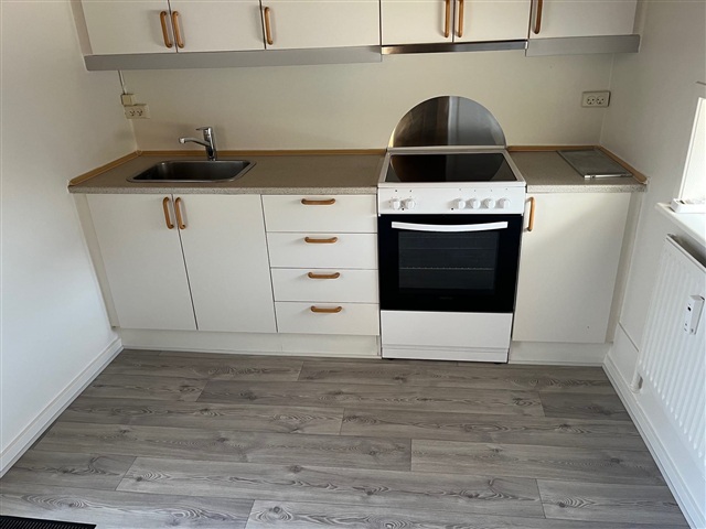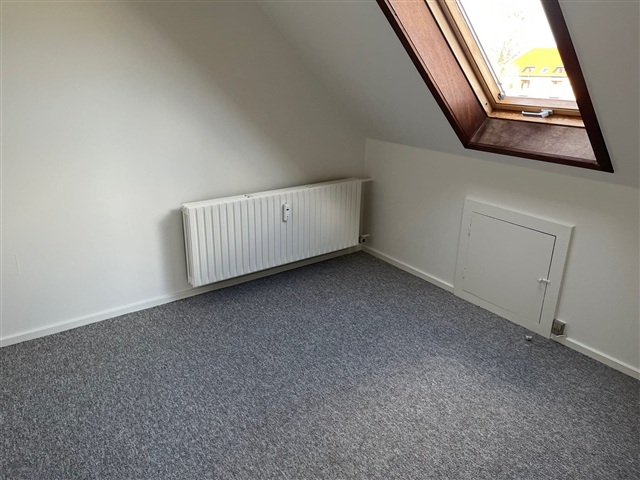 This centrally positioned first-floor apartment spans two levels and has recently undergone renovation, presenting itself in very good condition. The layout includes an entrance hallway, a kitchen that opens onto both a balcony and the garden, a bedroom, and a bathroom equipped with a shower cubicle. The spacious living room features wooden flooring. Upstairs, there is a landing area along with two additional rooms. The apartment comes with an allotted garden plot and is fitted with fixed carpets throughout. Heating is provided via district heating. Pets are not permitted in the residence. Currently, no specific date has been set for viewings; however, interested parties can reach out to receive information once a viewing time has been arranged.